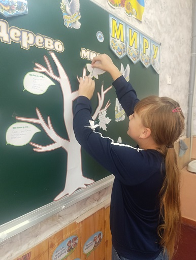Кульмінацією дня стало створення нашого «Дерева миру». Кожна дитина написала на паперовому аркуші своє бажання або думку про мир, а потім прикріпила його до дерева. Тепер це не просто дерево, а справжній символ наших спільних мрій про мир і злагоду у світі.