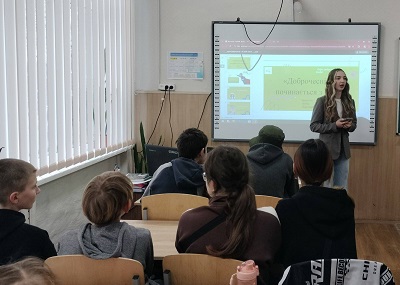У нашому ліцеї відбувся урок доброчесності, який провела для учнів 6–7 класів випускниця нашого закладу, а нині студентка першого курсу Донецького державного університету внутрішніх справ Яна Кудряжицька.